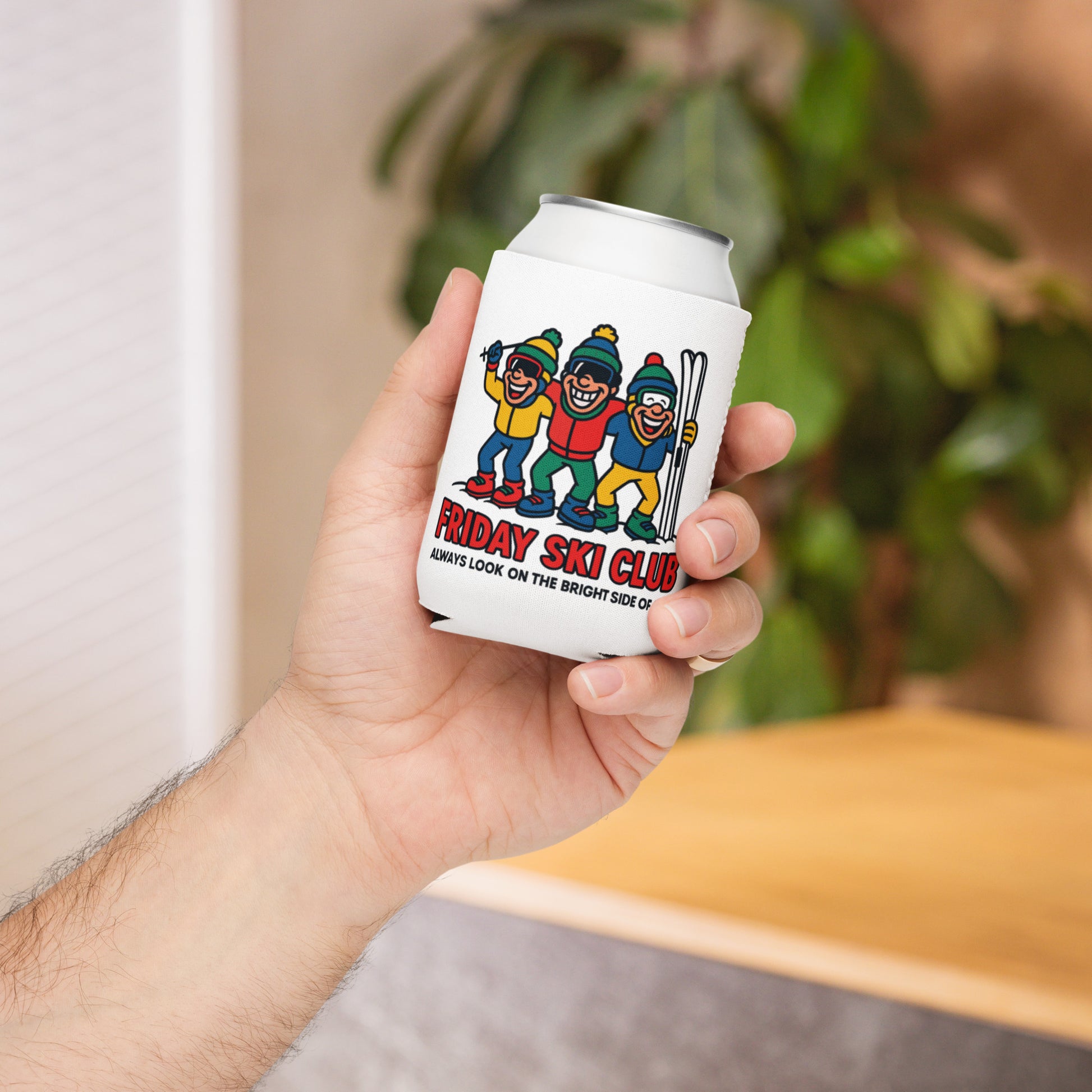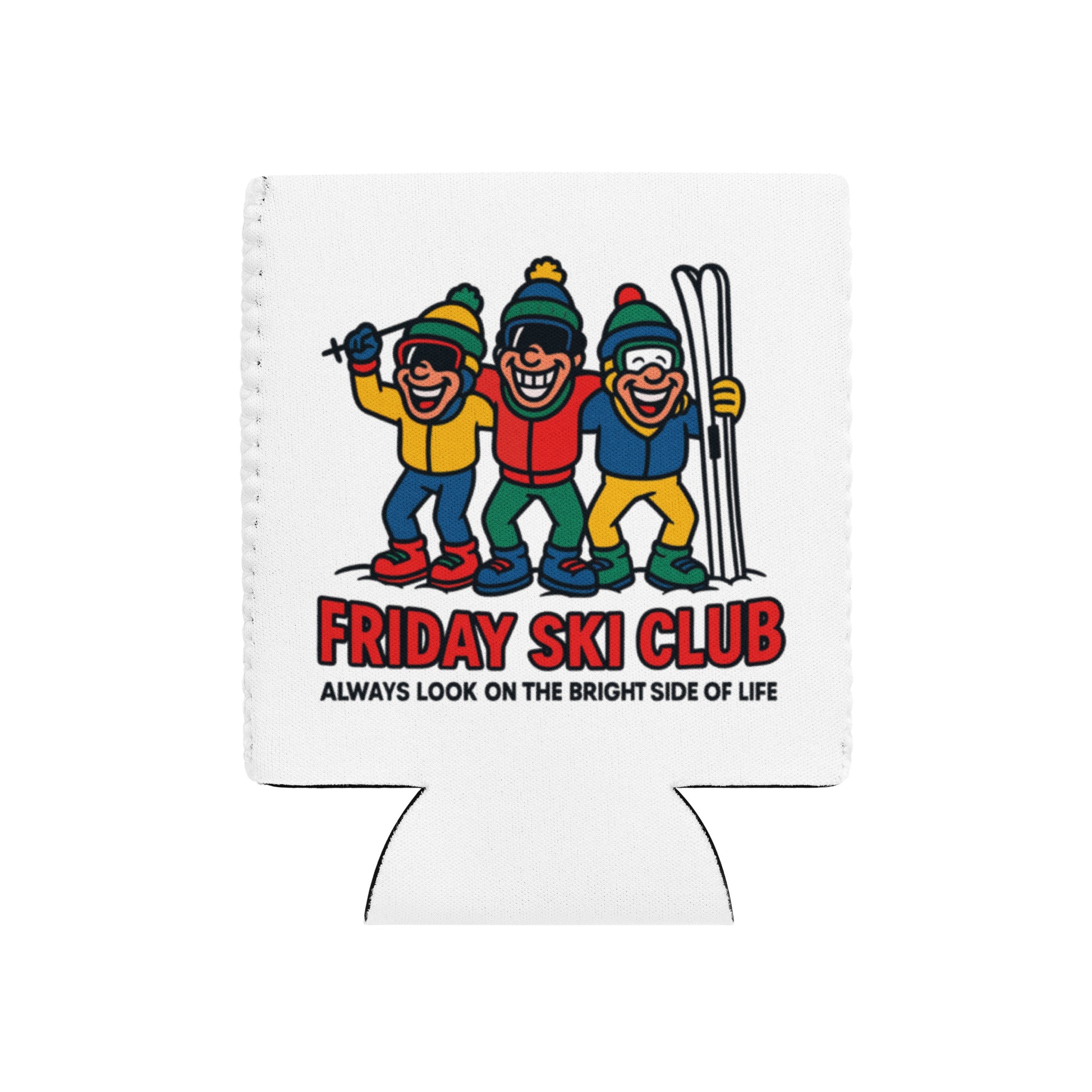 The Friday Ski Club Retro Trio Can Cooler features our classic three-skier logo — the iconic grin-crew linking arms and celebrating the pure joy of a powder day. Whether you’re cracking a cold one in the parking lot before first chair, enjoying apres beers at the lodge, or hanging at a backyard bonfire dreaming about the next storm, this can cooler is built for good vibes.